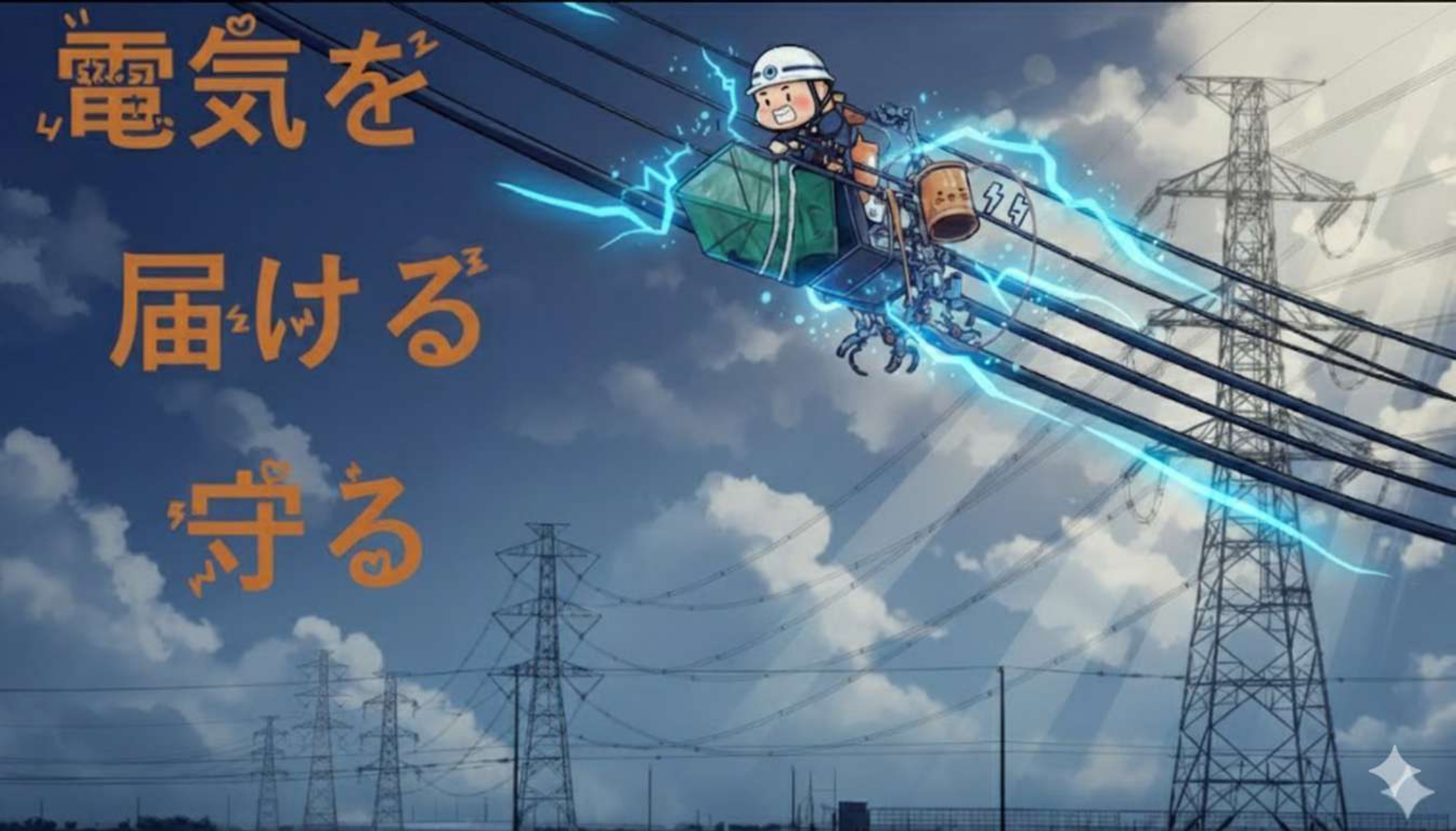 毎日の裏側に、電力を守る人たちがいます。 発電所で作られた電気は、送電線と配電線を通る長い旅を経て人々の生活に運ばれます。
